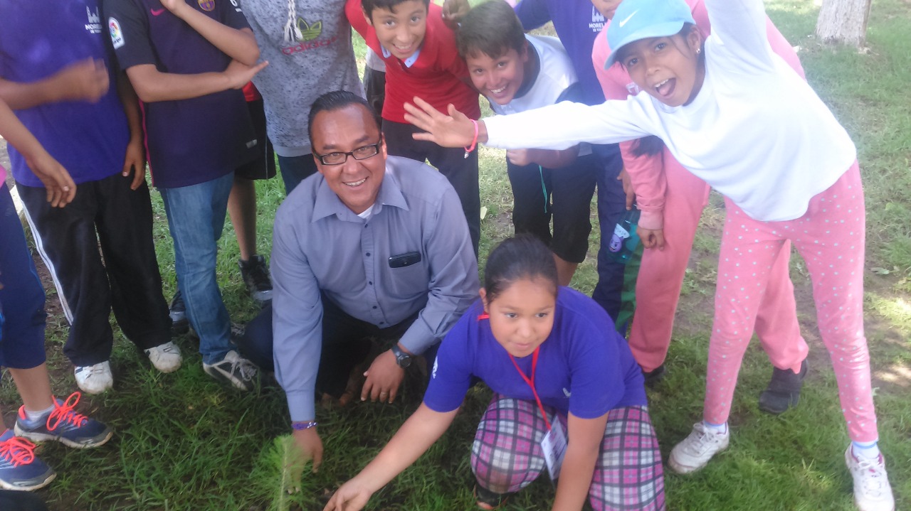 Tras haber plantado 77 pequeños pinos en la Unidad Deportiva Morelos Indeco, donados por las alumnas de la Licenciatura en Comunicación de la Universidad Interamericana para el Desarrollo (UNID-Morelia) Aidé Rodríguez Sánchez, Fanny Miranda Herrejón y Grecia Zeltzin Díaz así como el pequeño Francisco Javier Lemus Sánchez, el encargado del despacho festejó que las áreas del IMCUFIDE sean “espacios educadores”.