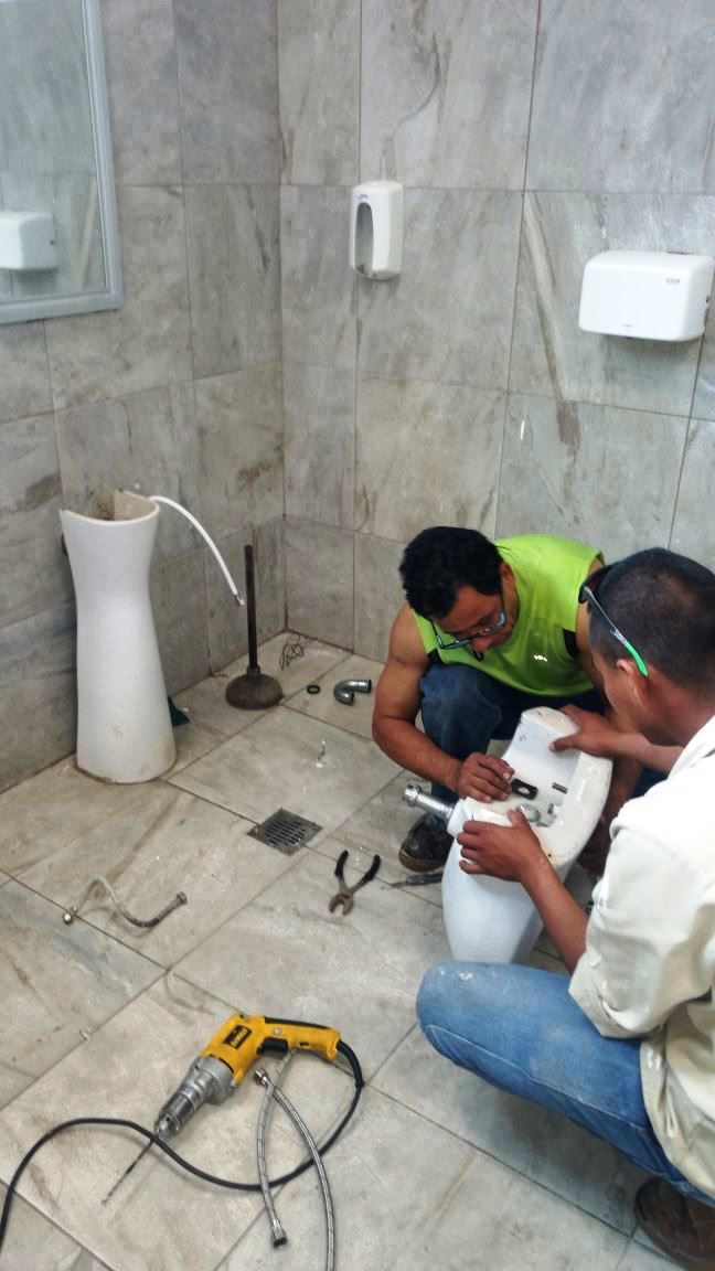 La rehabilitación consistió en: colocación de lámparas en baños, limpieza de rejillas del rebosadero, pintura en baños de hombres y mujeres, fijación de lava manos, además de la instalación de soportes para colgar maletas y ordenamiento en el acceso.
